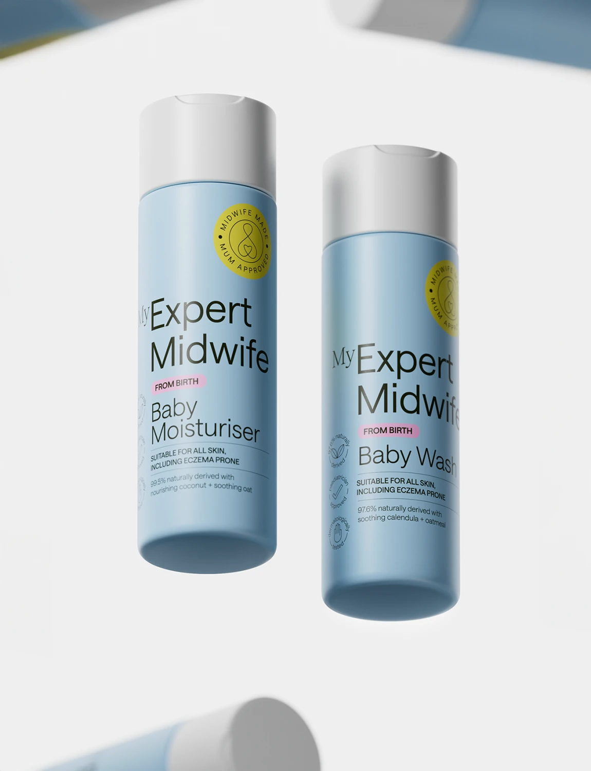 Inspired by the soft blues and nurturing pinks of midwives’ scrubs, the colour palette brings together safety for babies and warmth for mums, creating a brand that feels as caring as it is confident, and as modern as the